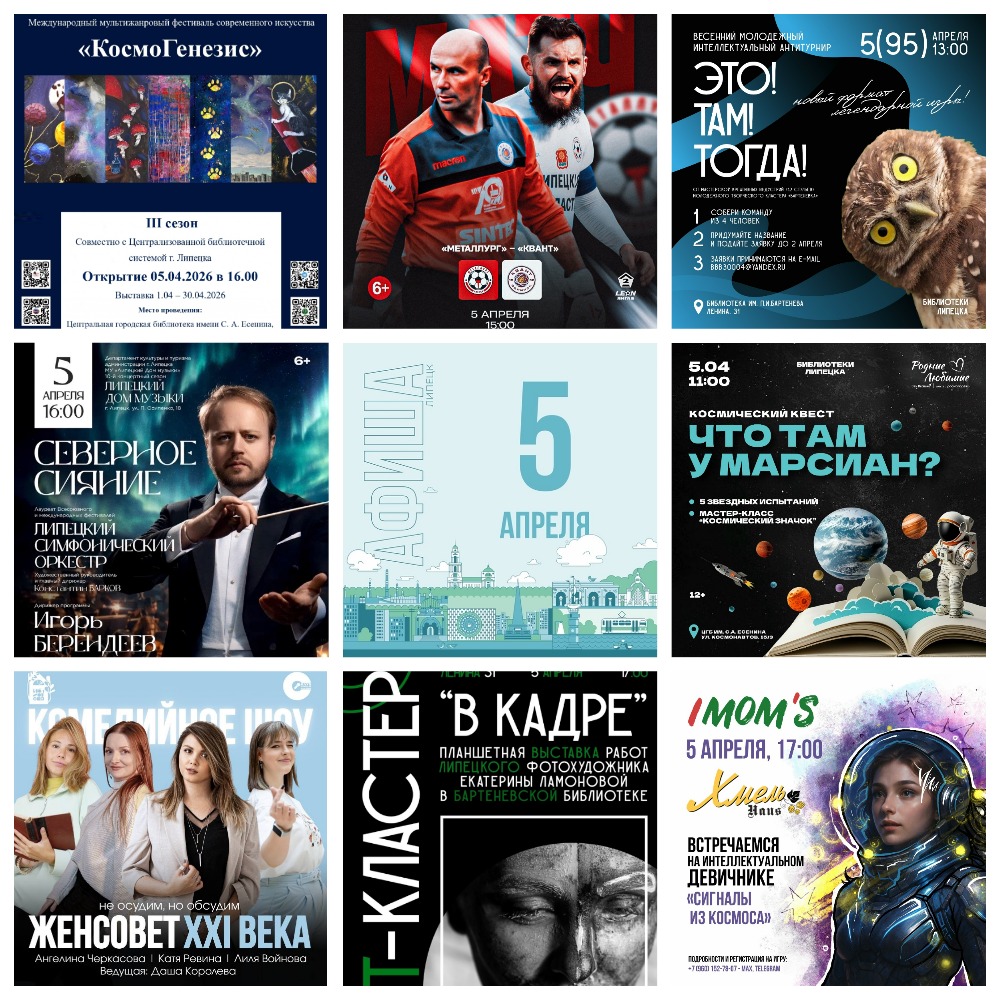 🔹16:00 — международный мультижанровый фестиваль «КосмоГенезис» 6+. Выставка работает с 1 по 30 апреля. Вход свободный.