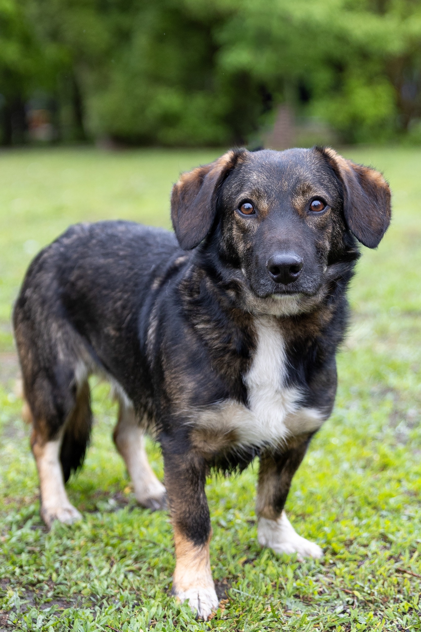 Особая история: молодой застенчивый пёс. Умный, добрый, но немного недоверчивый. Крошечным щенком попал под чью-то горячую руку, результат — рана на спине.