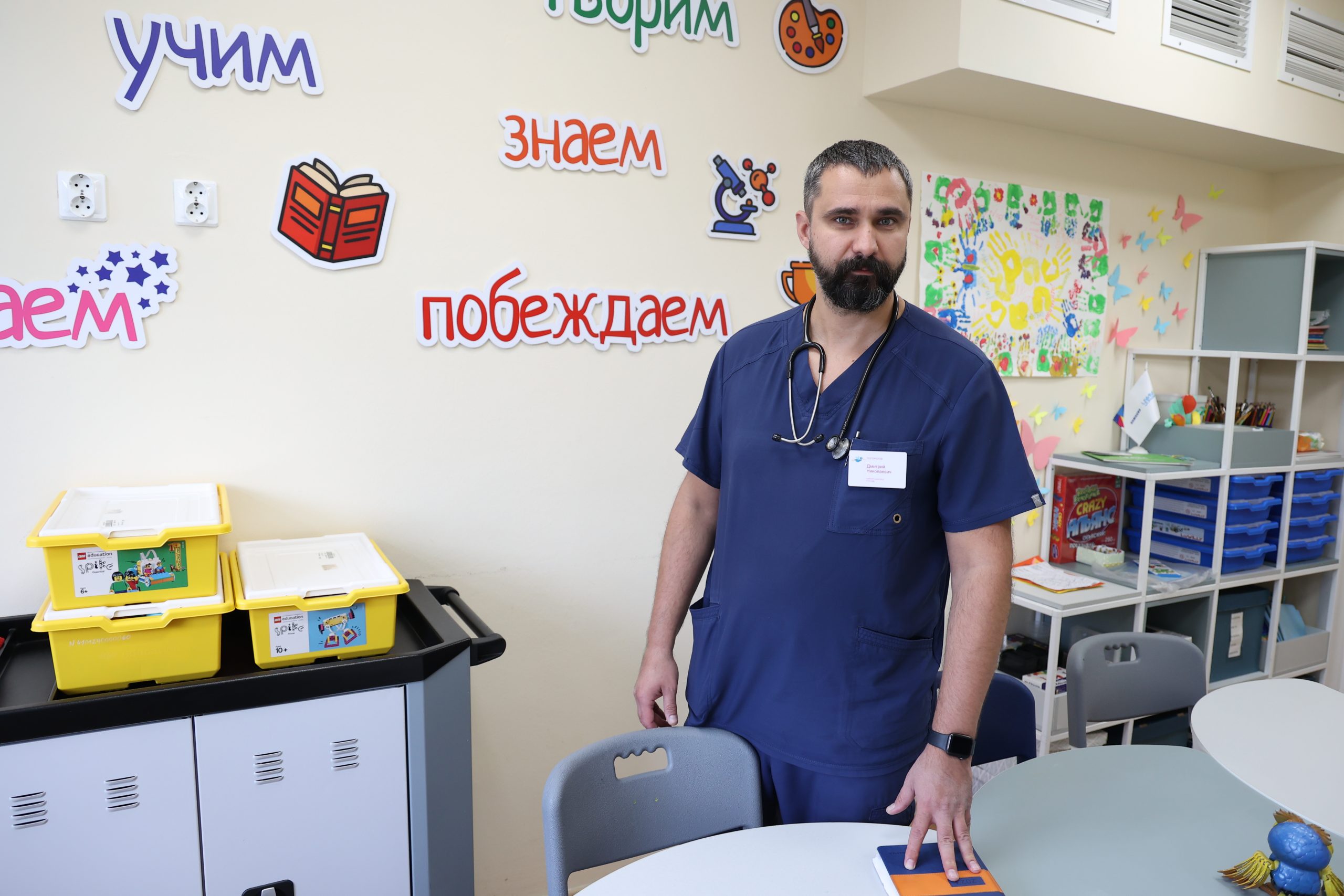 — Идея реализовать этот проект у нас в отделении зародилась очень давно. Но не было такой возможности, сколько бы я ни пытался, — вспоминает Дмитрий Погорелов. — Когда стал депутатом, появилась возможность напрямую обратиться в департамент образования. Я подошёл к Светлане Бедровой, она тогда была его председателем, и рассказал, что есть проект госпитальных школ, где дети, находясь на длительном лечении, смогут получать знания. Её это заинтересовало, и я организовал экскурсию в Москву в центр Дмитрия Рогачёва, который является родоначальником проекта «УчимЗнаем». Нам всё показали, мы переговорили с нужными людьми. И это сработало.