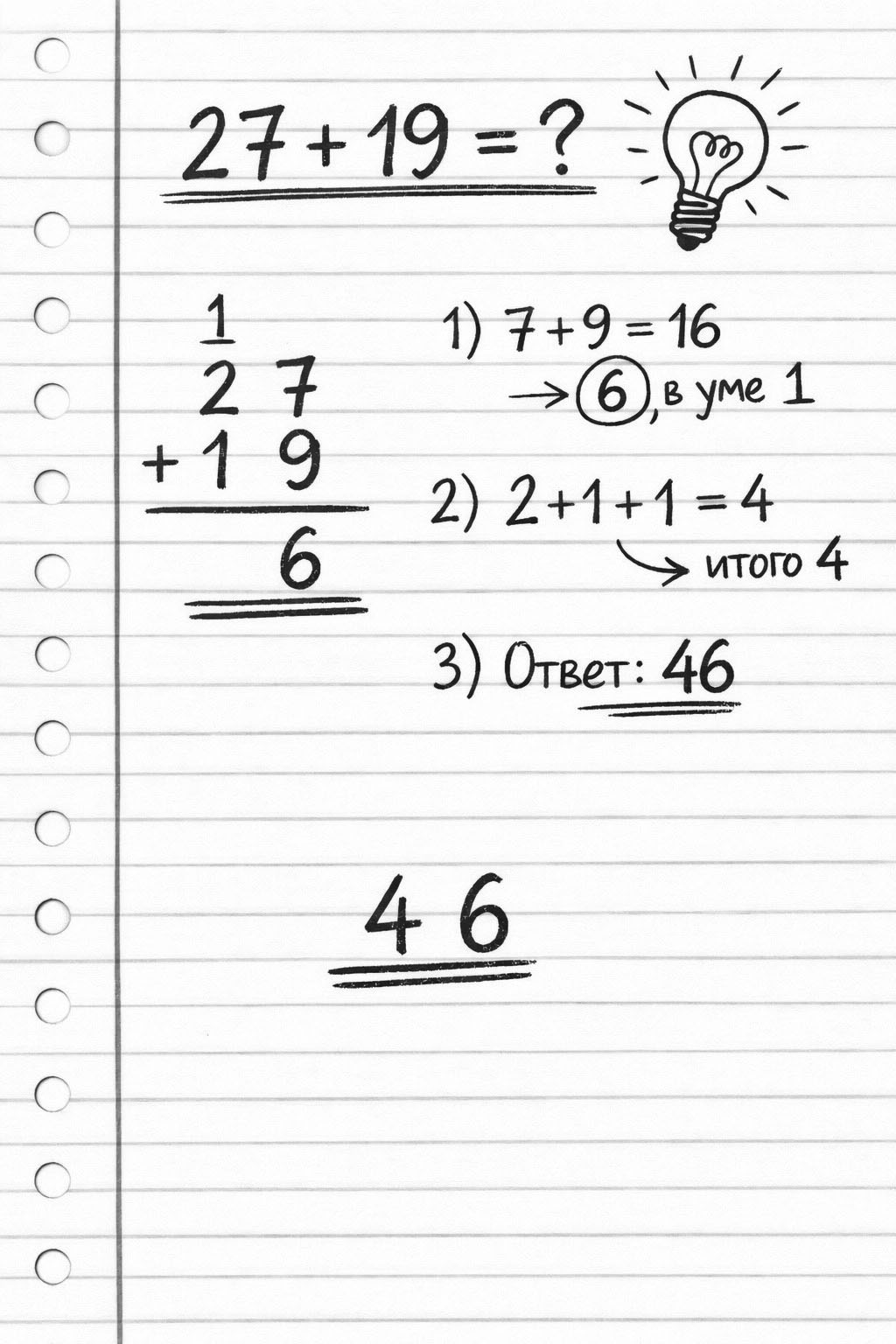 Помните, как нас учили складывать в столбик 27 и 19?