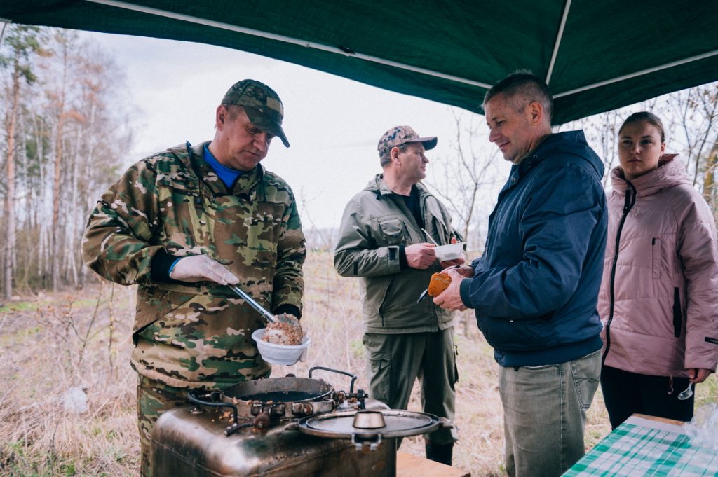 После работы всех участников акции ждала полевая кухня: гречневая каша с мясом, а также горячий чай и печенья. На природе, да ещё и после физического труда всё это казалось особенно вкусным.