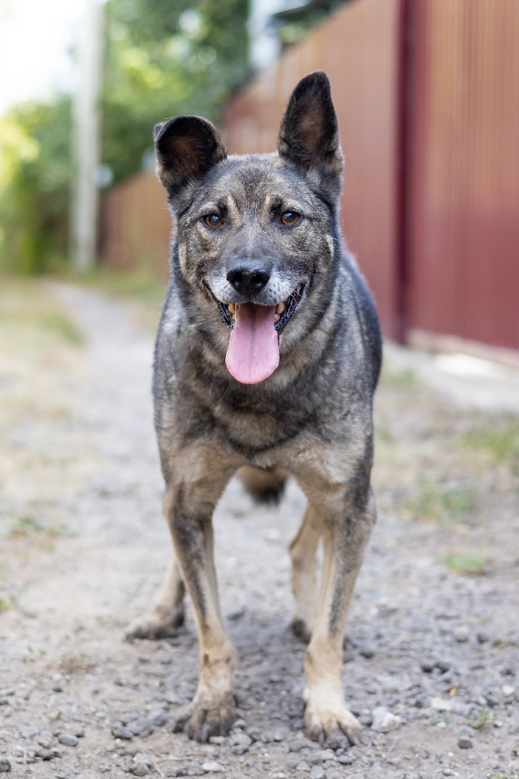 Особая история: пережил огнестрельное ранение, долгое лечение. Сейчас это дружелюбный молодой пёс. Ладит со всеми животными. Приучен к выгулу на поводке.