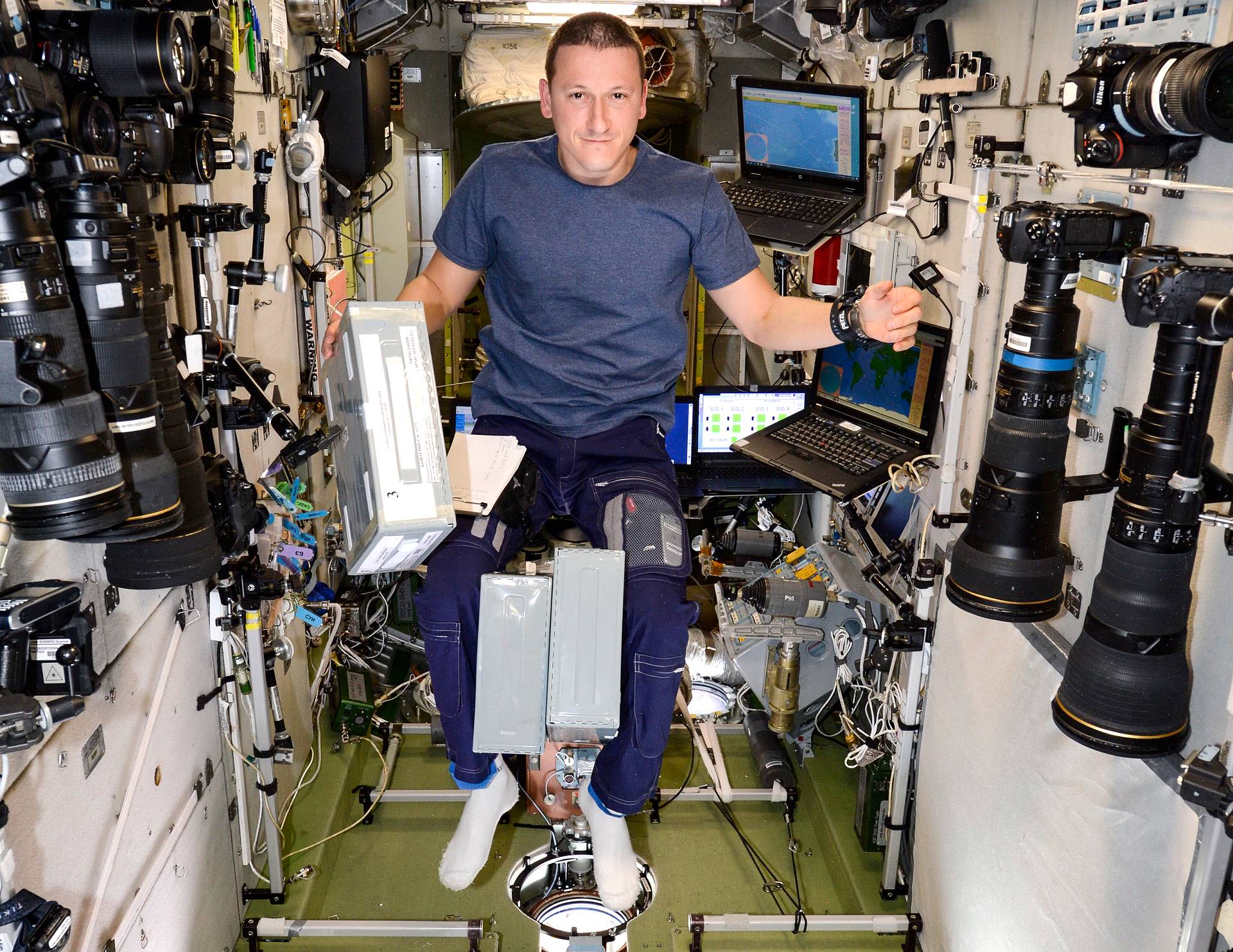 Мы живём по строгому расписанию. Подъём в 6 утра, отбой в 21:30. У нас восьмичасовой рабочий день. Все работы привязаны по времени. Дополнительно два часа в день физические упражнения. На сон восемь часов. Два выходных, как и на Земле. Часть субботы, как и дома, посвящена уборке. В выходные мы собираемся на совместный ужин, во время которого можем поболтать, обсудить прошедшую неделю, результаты работы, планы на следующую неделю или новости с Земли. Моё любимое занятие, когда есть свободное время, — фотографирование Земли.