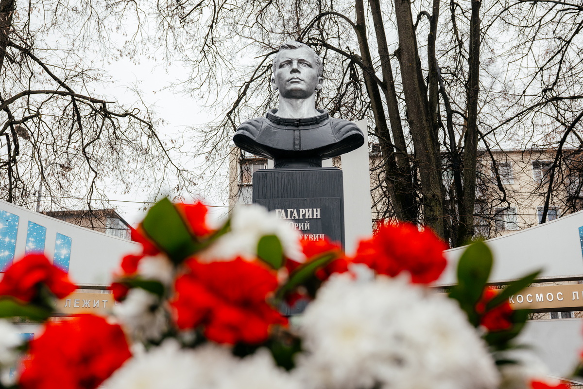 12 апреля по всей стране проходят торжественные мероприятия в честь Дня космонавтики. В этом году юбилей — первому в истории человечества полёту в космос исполнилось 65 лет. К бюсту исполнившему эту великую миссию Юрию Гагарину в этот день несли цветы, не смотря на дождливую погоду и совпавший с этим праздником другой — Светлой Пасхи.