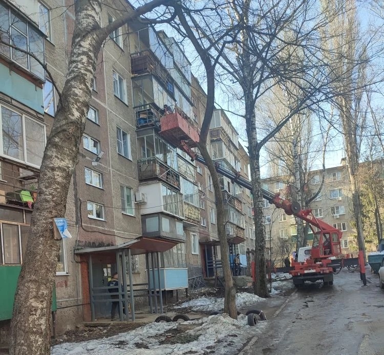 Начали ремонтировать балконы. Погода стоит сухая, можно смело снимать старую обшивку.